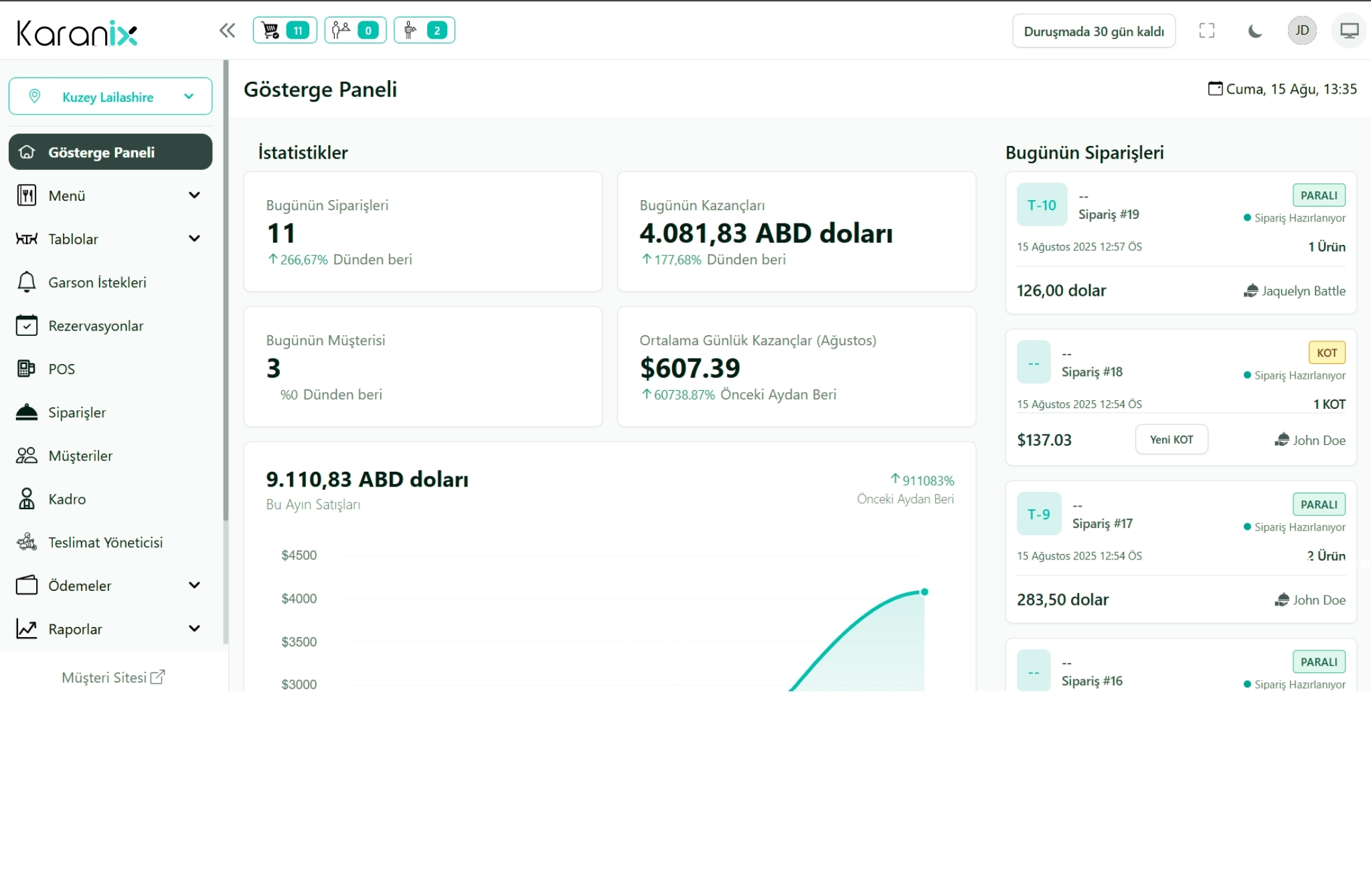 İşletme yönetiminde hız ve pratiklik Karanix'de